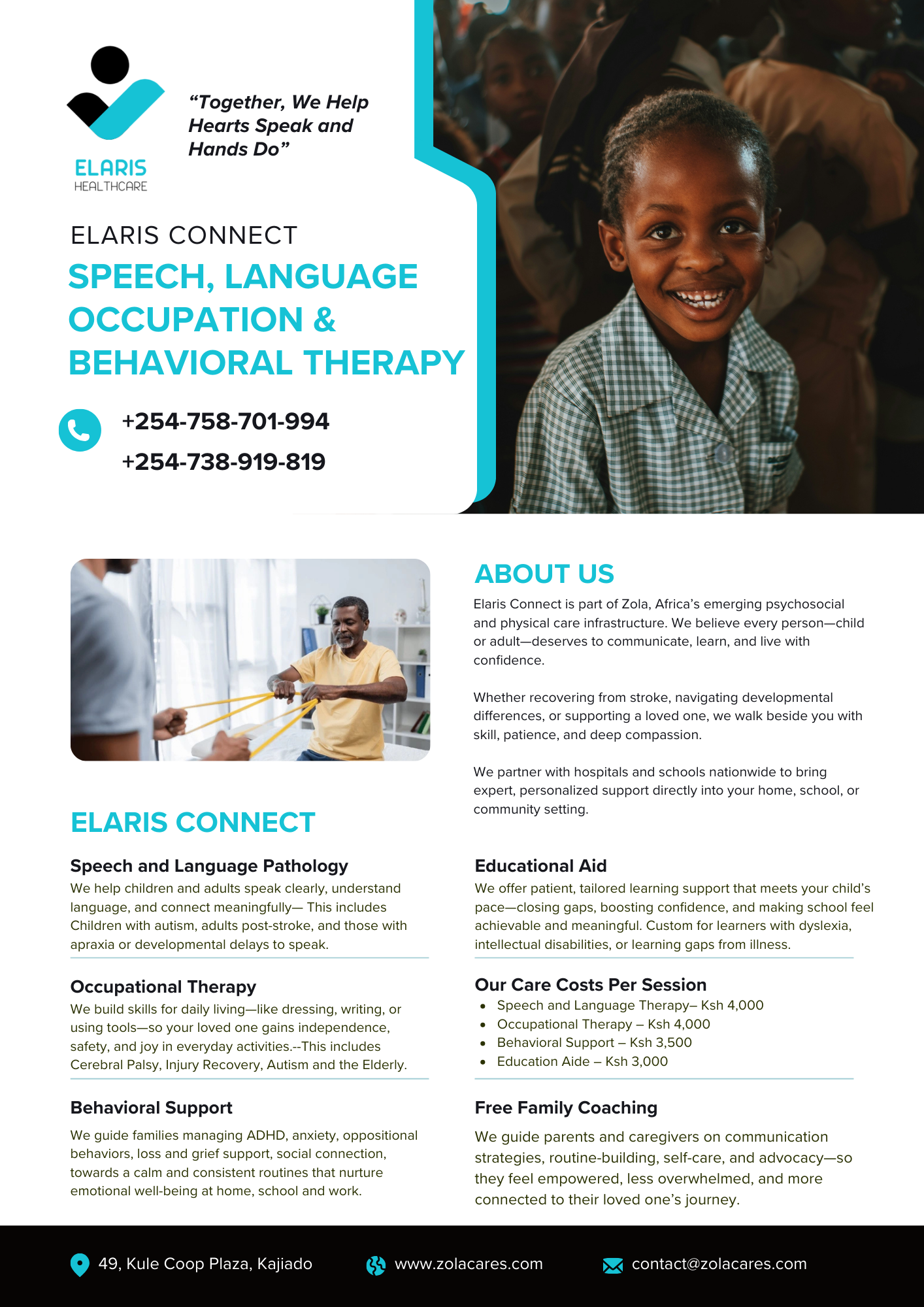 Elaris Connect empowers daily living through speech and language therapy, occupational therapy, behavioral support, and educational aid—helping individuals communicate, function, and thrive in school, work, and home environments.